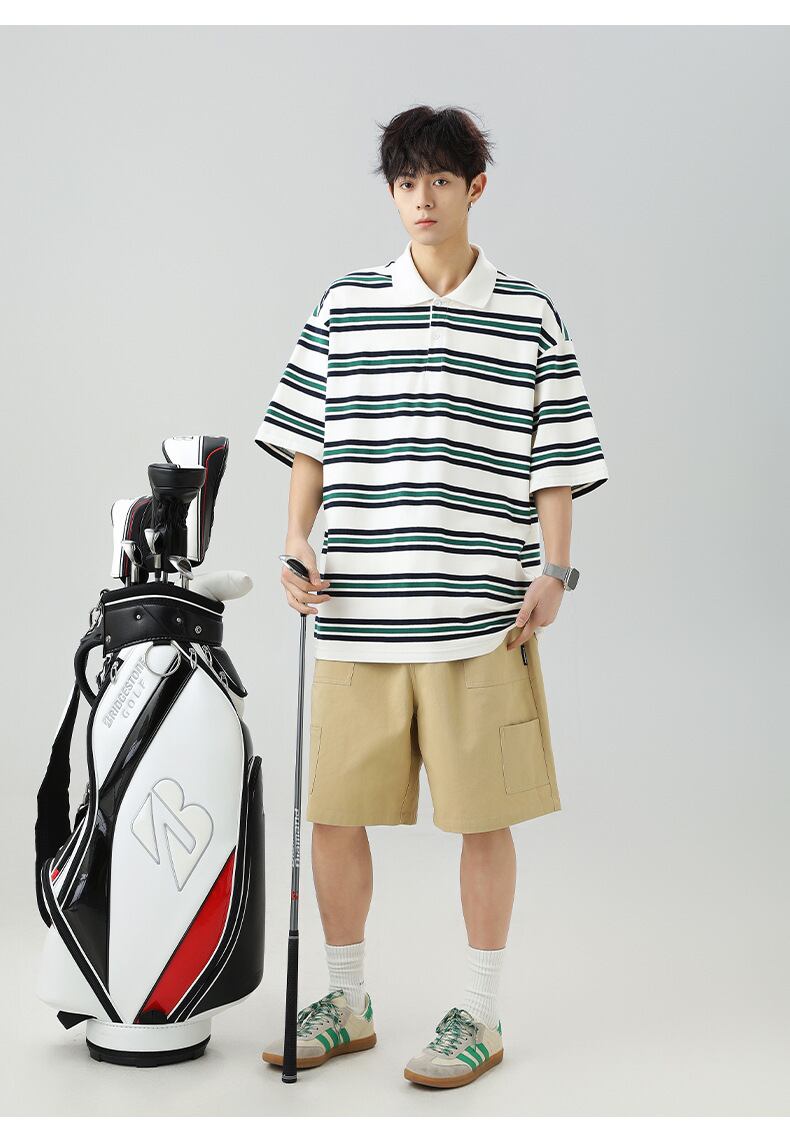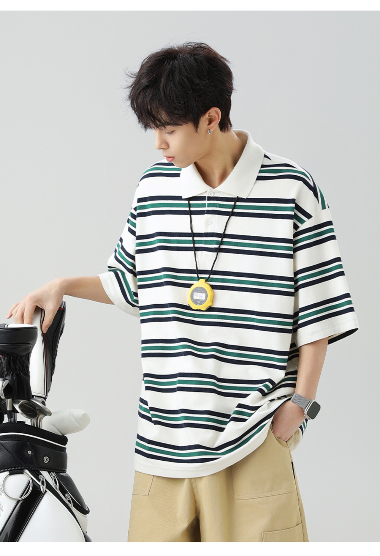 【欧米風】カジュアル ストライプ 半袖 メンズ Tシャツ