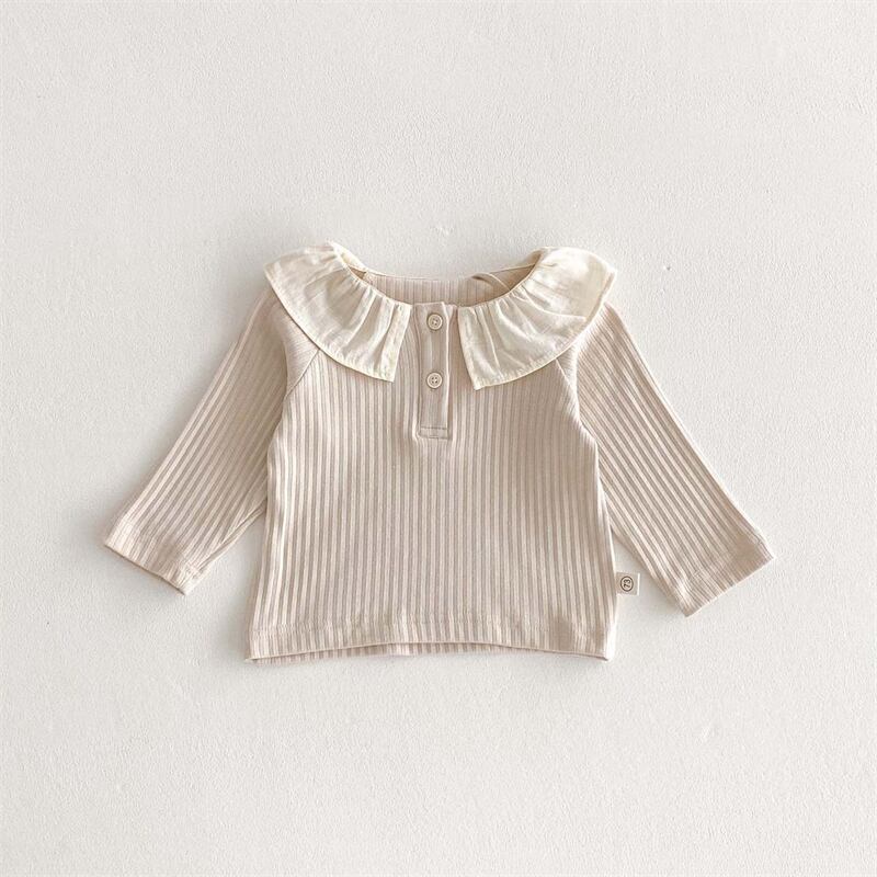 【女の子】可愛いラッフルカラー リブ長袖Tシャツ 73〜100cm