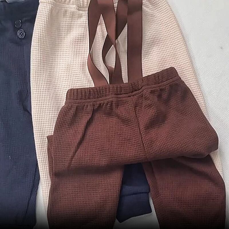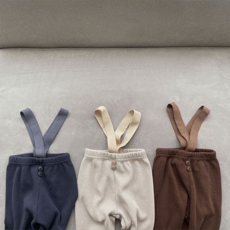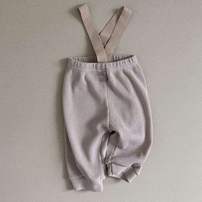 春の装いにぴったりの、ワッフル素材が可愛いサスペンダー付きパンツです。