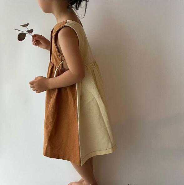 おしゃれな2ブロックデザインの、女の子用ノースリーブワンピースです。