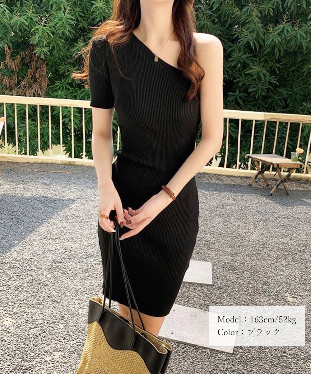 【パーティーに】ワンショルダー アシンメトリー ニットドレス