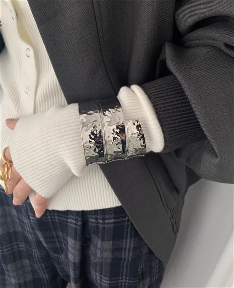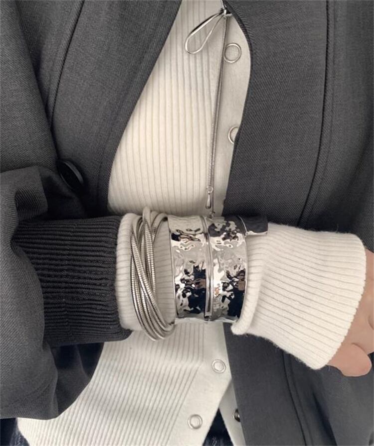 手元にエッジの効いた個性をプラスする、パンクスタイルのブレスレット。重ね付けしているようなデザインが、存在感を放ちます。不規則なパーツの組み合わせが、他にはない魅力を引き立てる、大人気のアイテムです。