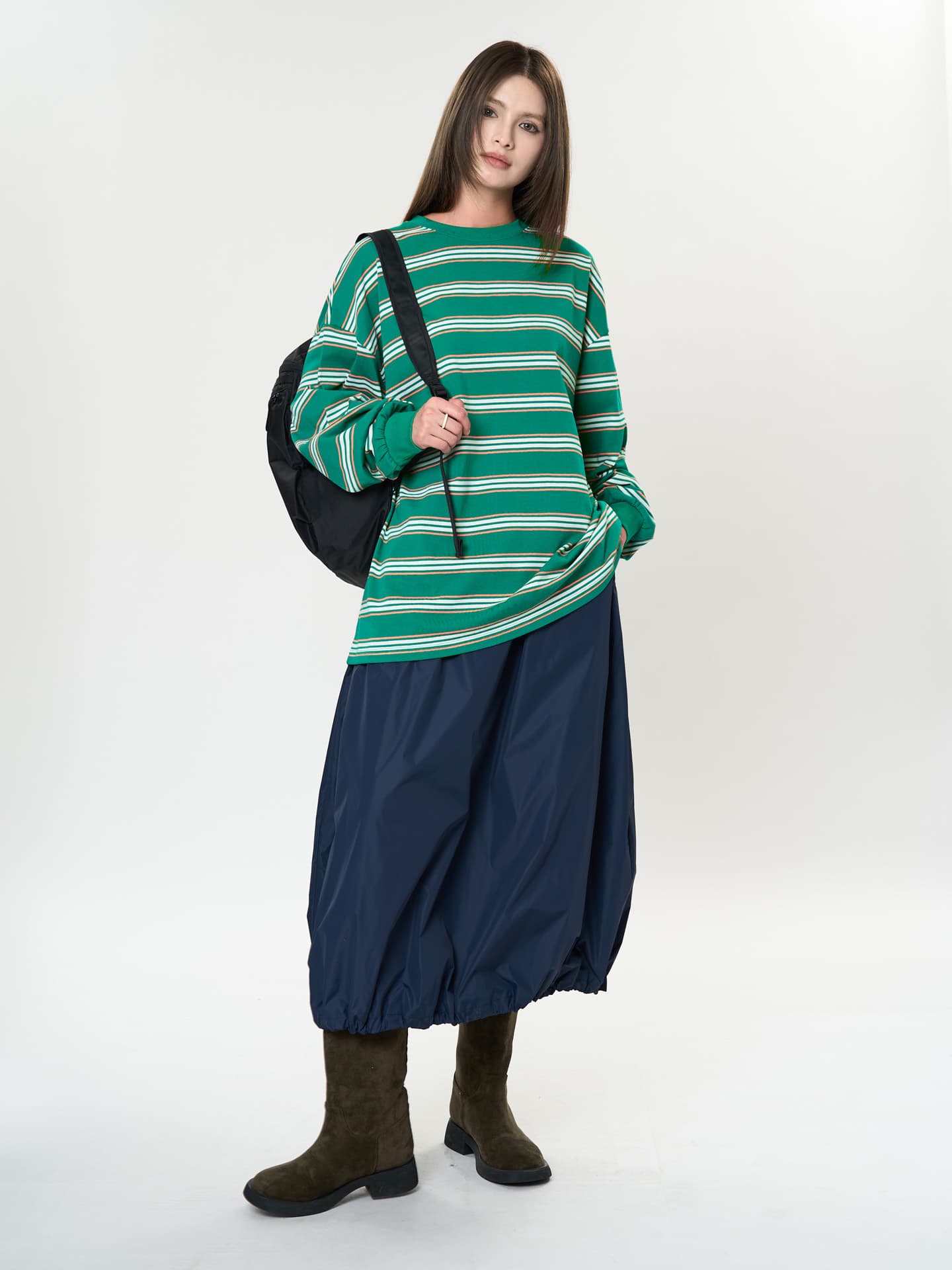 【ゆるっと可愛い】ストライプ柄 長袖トップス