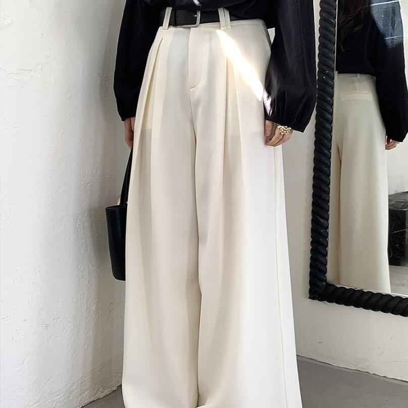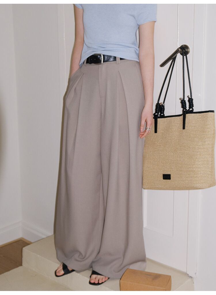 ハイウエストデザインで脚長効果抜群のワイドスラックス。カジュアルながらもきれいめにも着こなせる、クロ、グレー、ベージュ、カーキの4色展開。普段使いからオフィススタイルまで幅広く活躍します。