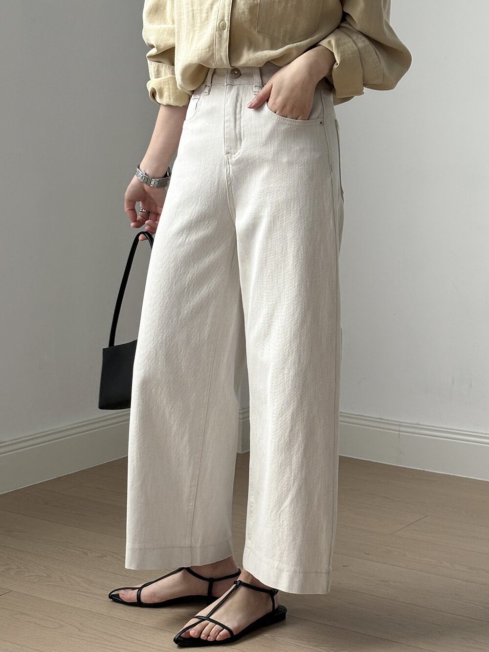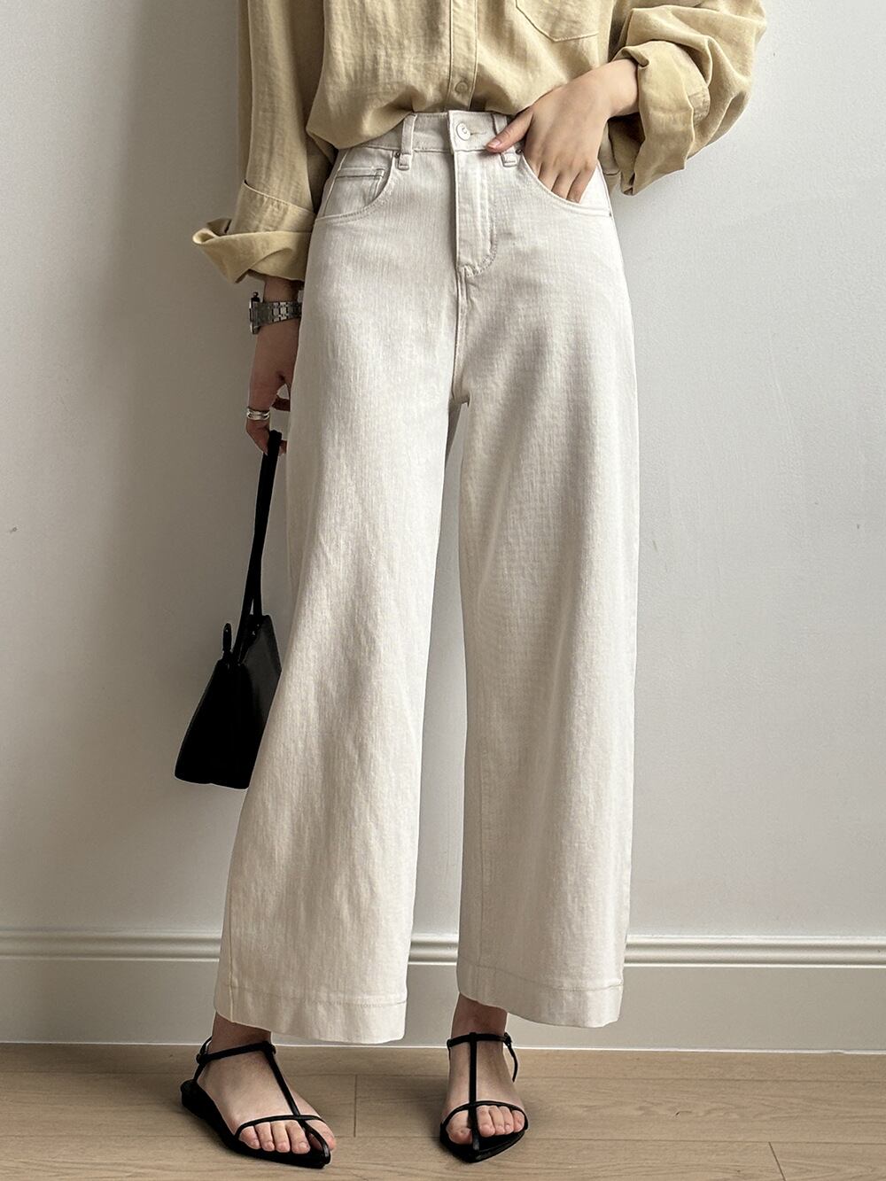 春のカジュアルスタイルにぴったりの、軽快な九分丈デニムパンツ。すっきりとしたシルエットで、様々なトップスと合わせやすいアイテムです。