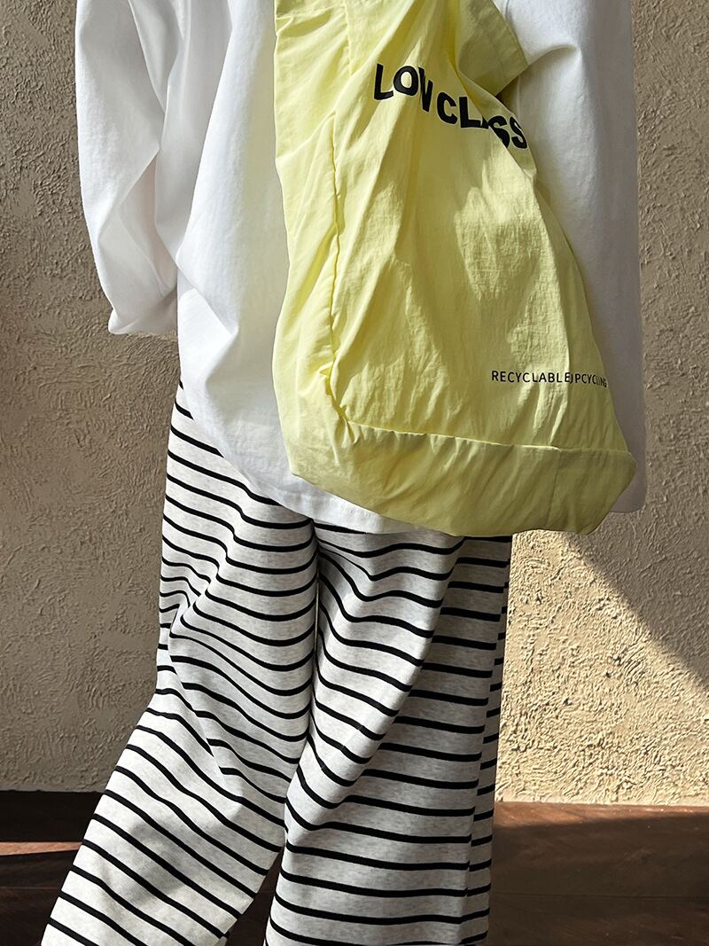 ちょっとしたお出かけやリラックスタイムの部屋着としても活躍するボーダー柄のカジュアルパンツです。