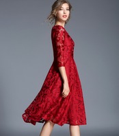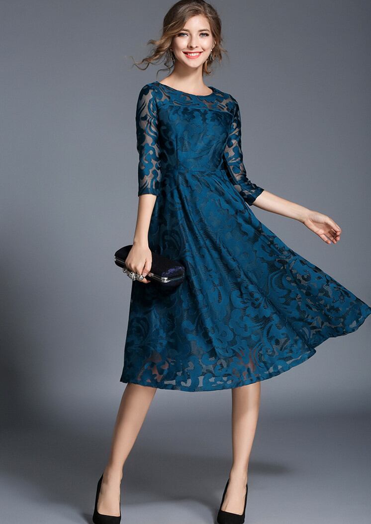 【上品レースと透け感】ミディアム丈 総レースフレアワンピース