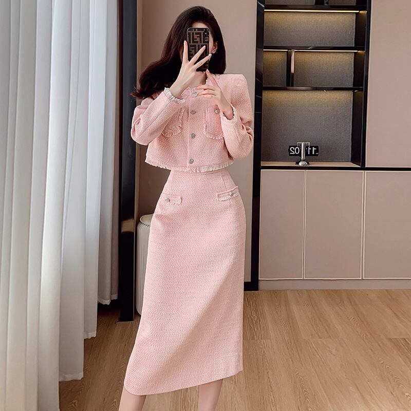 【フェミニンなフリンジ】ツイード ロングスカート セットアップ