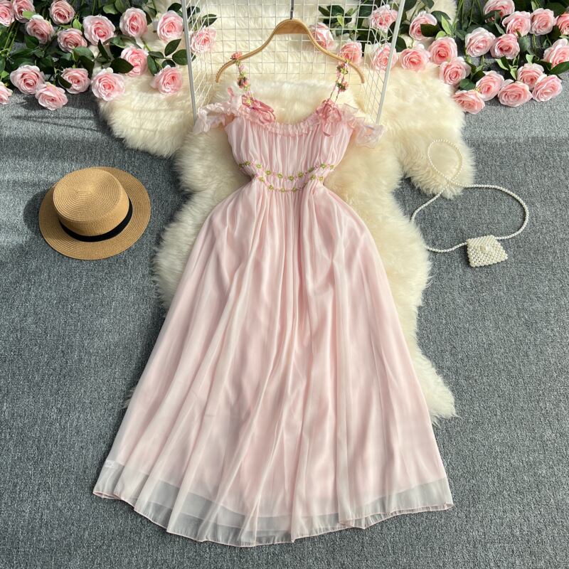 【夏に涼やか】ボタニカル柄 オフショルダー キャミソール マキシワンピース