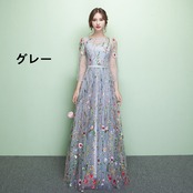 【華やか刺繍と着回し】Aライン 花柄 パーティードレス