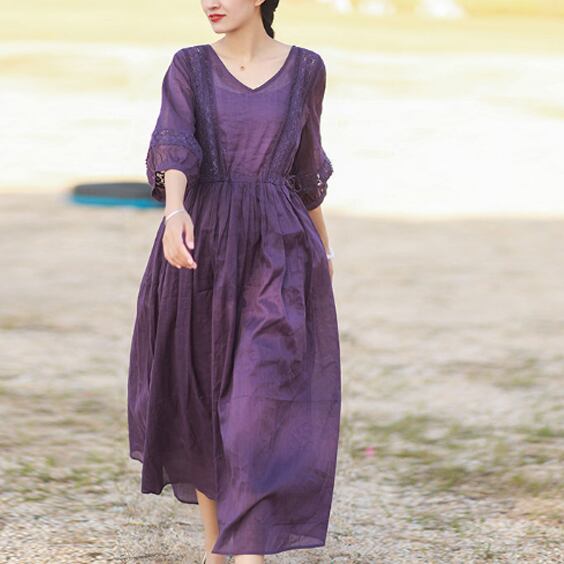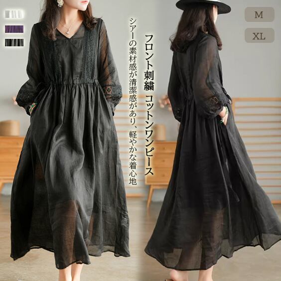 清潔感のあるシアー素材が魅力の、Vネックコットンワンピースです。軽やかな着心地で、これからの季節にぴったり。