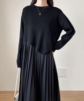 するんと落ちるラインが、体をほっそり見せてくれるプリーツワンピースとトップスのセットアップです。