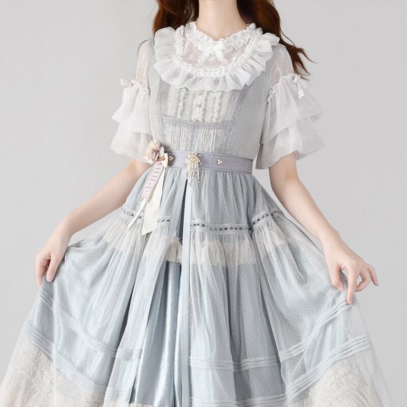 【シフォン】パフスリーブ半袖ブラウス