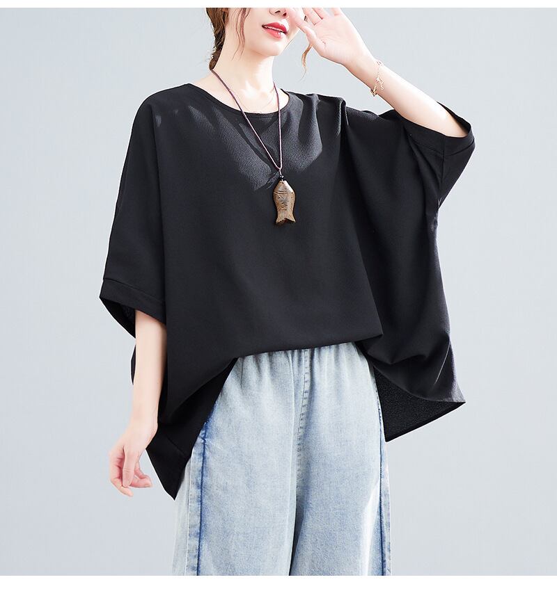 気になる二の腕と肘をすっぽり隠してくれる5分袖ドルマンのカットソーです。爽やかな着こなしが叶うシンプルなプルオーバータイプで、清潔感のある無地デザイン。