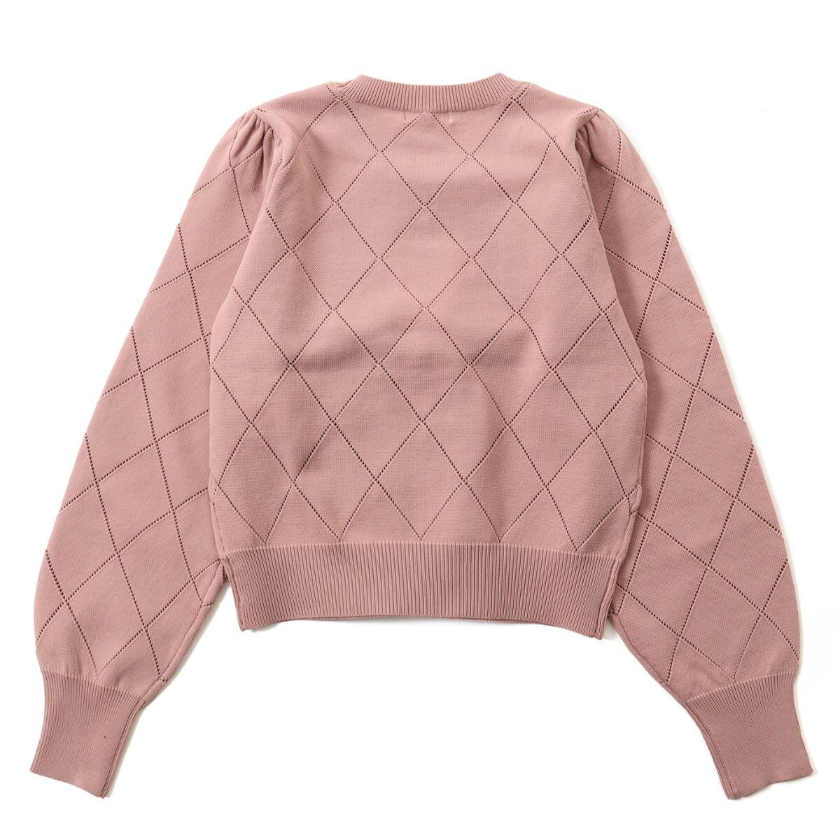 コーデのバランスが整うジャストサイズシルエットに、透かし編みのダイヤ柄がおしゃれなニットトップスです。エレガントな雰囲気にパールとリボンのディティールでフェミニンな可愛さをプラス。