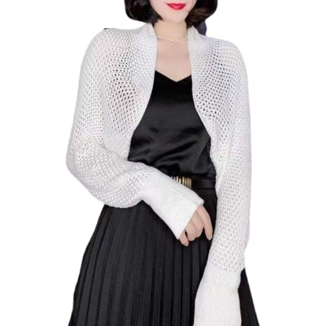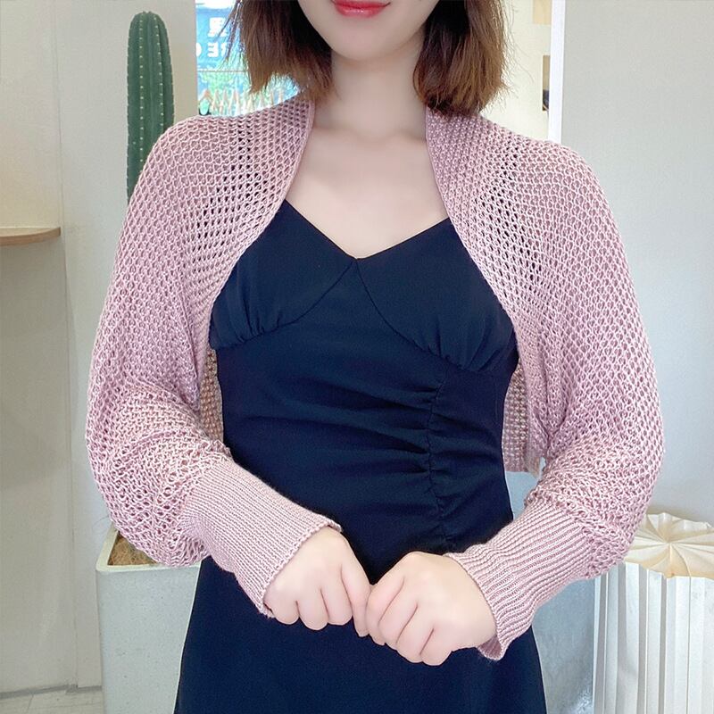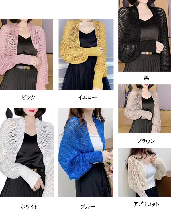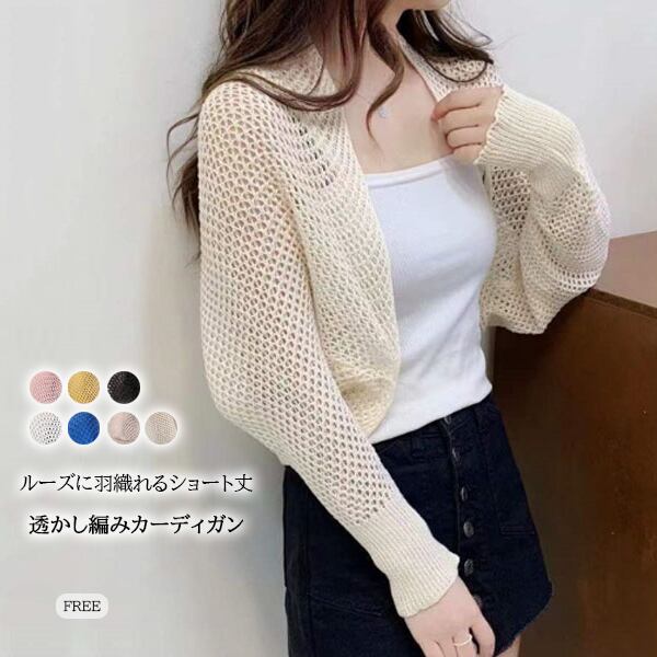 ルーズに羽織れるショート丈の透かし編みカーディガンです。Tシャツやキャミソールと合わせたほんのり肌見せコーデはもちろん、ワンピースの上に重ね着も◎。デニムとの相性も抜群です。