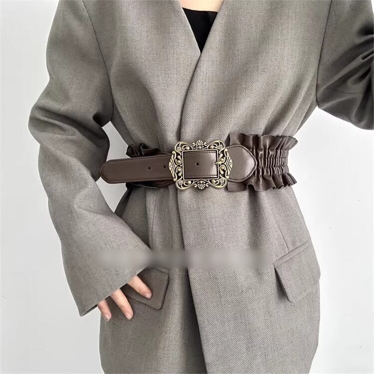 伸縮性のある素材で、68cm〜110cmのウエストに快適にフィットします。幅7.5cmの広めデザインがスタイリッシュに腰元をキメ、シンプルなドレスもぐっと華やかに。ブラックとコーヒー色の2色展開で、カジュアルからフォーマルまで幅広いコーディネートに合わせやすく、日常使いに最適です。軽量で付け心地も抜群、締め付け感のない柔らかな着用感が特徴です。