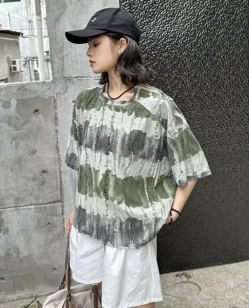 INS風のプリントとレトロ欧米風のデザインが目を引くTシャツです。